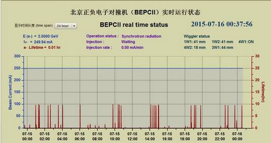 在加速器中心运行人员的努力下, BSRF在7月14日成功实现恒流注入(Top-up)运行,束流流强控制在250mA±0.1mA,达到了国际先进水平,这是BSRF在提高性能方面的又一重要里程碑。在7月14日至16日恒流注入运行期间,各光束线的实验站均向用户开放,用户反映光源稳定,实验结果良好。