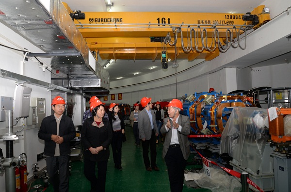 刘艳荣一行参观了CSNS工程沙盘,陈元柏介绍CSNS项目的概况和工程进展情况。随后,双方进行座谈。陈元柏作了CSNS工程进展报告,从工程概况、进展、谱仪规划与用户培养、当前工程主要问题及解决措施等方面介绍了CSNS工程的详细情况。