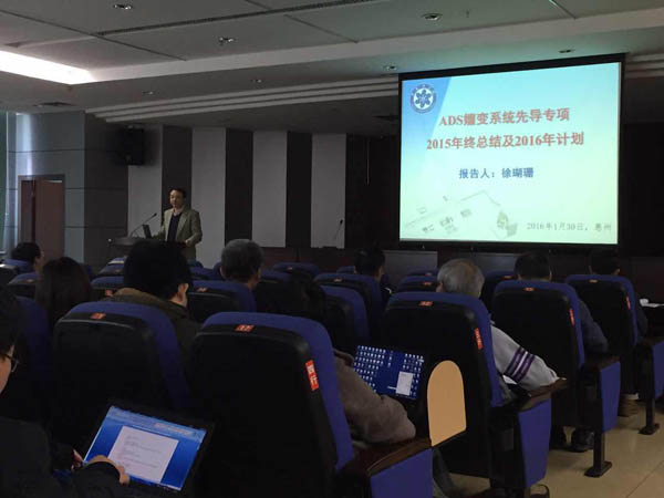 1月30日,中国科学院战略性先导科技专项“未来先进核裂变能”-ADS嬗变系统2015年度总结会在惠州先进能源与材料研究中心召开。ADS先导专项负责人、项目和课题负责人以及部分研究骨干80余人参加会议。中科院副院长詹文龙、中科院近代物理研究所所长肖国青,中科院高能物理研究所所长王贻芳、院JG监理部主任汪大星、核能专项监理组专家等出席会议。