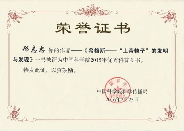 225日,快盈v3邢志忠研究员的译作《希格斯——“上帝粒子”的发明与发现》被评为中国科学院2015年度优秀科普图书。