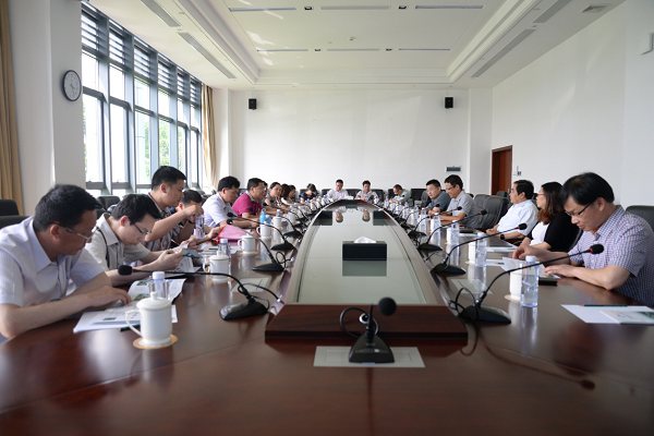 甘孜州政府一行观看了沙盘模型,陈延伟介绍了CSNS的园区布局、装置原理、建设队伍和设备安装等最新进展。陈延伟提到,LHAASO和CSNS都是高能所在异地建设的大科学工程,都需要地方政府给予大力支持和帮助。