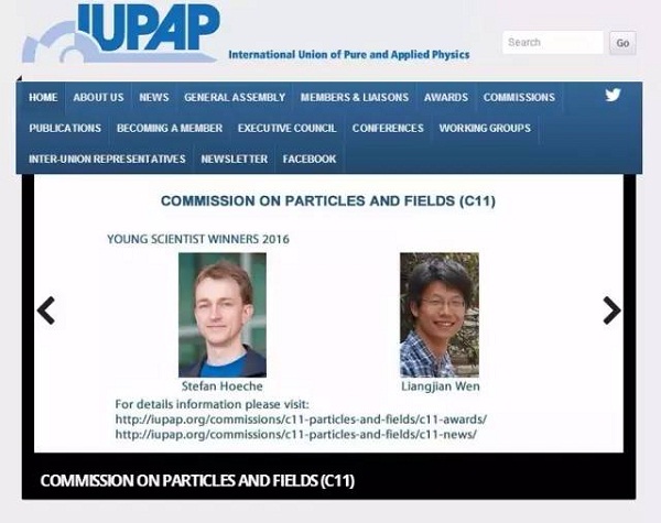 6月22日,国际纯粹与应用物理联合会(International Union of Pure and Applied Physics,简称IUPAP)在官网上正式发布了2016年度青年科学家奖获奖人名单。中科院高能所温良剑副研究员入选并被授予粒子物理与场论委员会(C11)青年科学家奖,以表彰他在中微子物理研究中的原创性贡献,尤其是在发现中微子混合角θ13非零并精确测量该参数中的贡献。这是该奖项第一次颁发给中国大陆的粒子物理学家。
