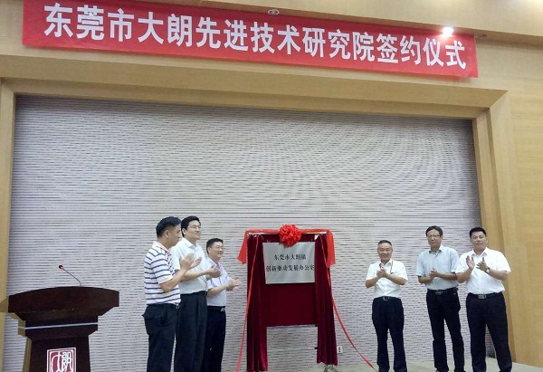 签约仪式上,胡浩举、陈元柏预祝大朗先进技术研究院的建设能顺利完成。双方代表签订了《关于共建东莞市大朗先进技术研究院框架协议》并为“东莞市大朗镇创新驱动发展办公室”揭牌。