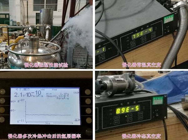 12月10日,慢化器运抵安徽合肥,由高能所、中国工程物理研究院材料研究所、合肥聚能电物理高技术开发有限公司的相关人员联合对慢化器进行开箱后各项性能指标复测,经过一周时间的紧张测试,于12月17日完成了包括气压试验、常温氦质谱检漏、真空度测试、低温绝热性能测试、多次冷热冲击后的氦质谱检漏等共20余项性能指标的复测,各项复测技术指标完全符合设计要求。