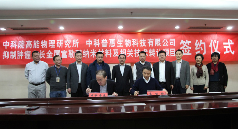 2017年12月6日,快盈v3与中科普惠生物科技有限公司关于“抑制肿瘤生长金属富勒醇纳米材料及相关技术”转让合同签约仪式在高能所举行。高能所所长王贻芳院士、纪委书记魏龙研究员、副所长陈刚研究员、所长助理董宇辉研究员、技经处马创新处长、国家纳米科学中心副主任赵宇亮院士以及项目组研究人员,怀柔科学城筹备办张建民副主任,怀柔纳米产业园长城伟业副总经理肖亮,中科普惠生物科技有限公司董事长宋建军和公司成员十余人出席了签约仪式。