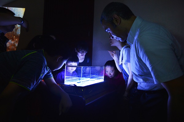 此外,高能所还向公众开放了包括北京正负电子直线加速器、储存环、北京谱仪、计算中心、北京同步辐射装置、博展馆等北京玉泉路园区部分工作区域;职工Tamer Tolba带领研究生为公众奉上了四个有趣的科学小实验:用光测头发丝直径、“看见”宇宙线、特斯拉线圈和门多西诺电机。参与的公众不仅可以动手参与实验,还能得到一份粘贴有自己的头发丝并有实验人员签字的小证书。