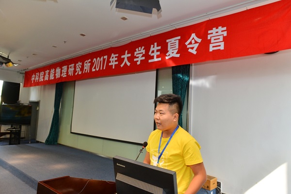 陈子林代表营员发言,他表示非常高兴能够有机会与来自全国各高校的优秀学生共同学习交流,期待在接下来的活动中可以享受知识的盛宴并收获到友谊。高年级学生代表魏占辰分享了在高能所学习和生活的点点滴滴,祝愿学弟学妹们在高能所度过轻松愉快、收获颇丰的一周时光。