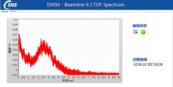 28日上午10时,在CSNS靶站谱仪控制室,科研人员紧张待命,作质子束流打靶前的最后准备。工程经理部成员和相关系统人员凝视着控制系统的屏幕,期待共同见证工程历史性的一刻。在工程总指挥兼工程经理陈和生院士发出指令后,从加速器引出的质子束流首次打向金属钨靶。10时56分,科研人员在靶站6号和20号中子束线分别测量到从两个不同慢化器输出的中子能谱,散裂中子源顺利获得中子束流。