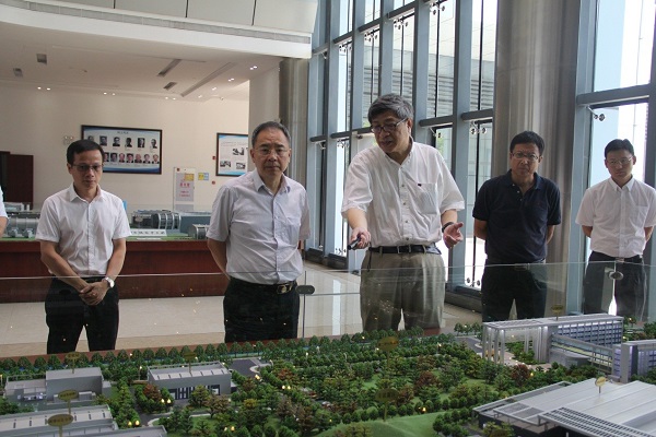 何宁卡一行首先观看了CSNS沙盘模型,听取了陈和生院士关于园区构成和装置原理的介绍,详细了解了谱仪工作原理和装置的应用领域。在陈和生的讲解下,何宁卡一行参观了直线隧道、环隧道、环中控室和靶站谱仪大厅,询问了CSNS各项设备的研制情况、国产化率以及研制过程中解决的技术难点。