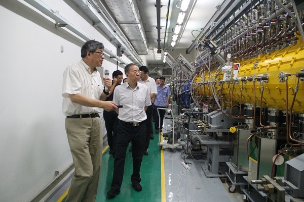 10月9日,广东省发展改革委主任何宁卡一行到中科院高能所东莞分部对中国散裂中子源(CSNS)进行调研。参加调研的有CSNS工程总指挥陈和生院士、高能所副所长陈延伟、东莞分部副主任王生、工程常务副经理马力、工程副经理傅世年等。