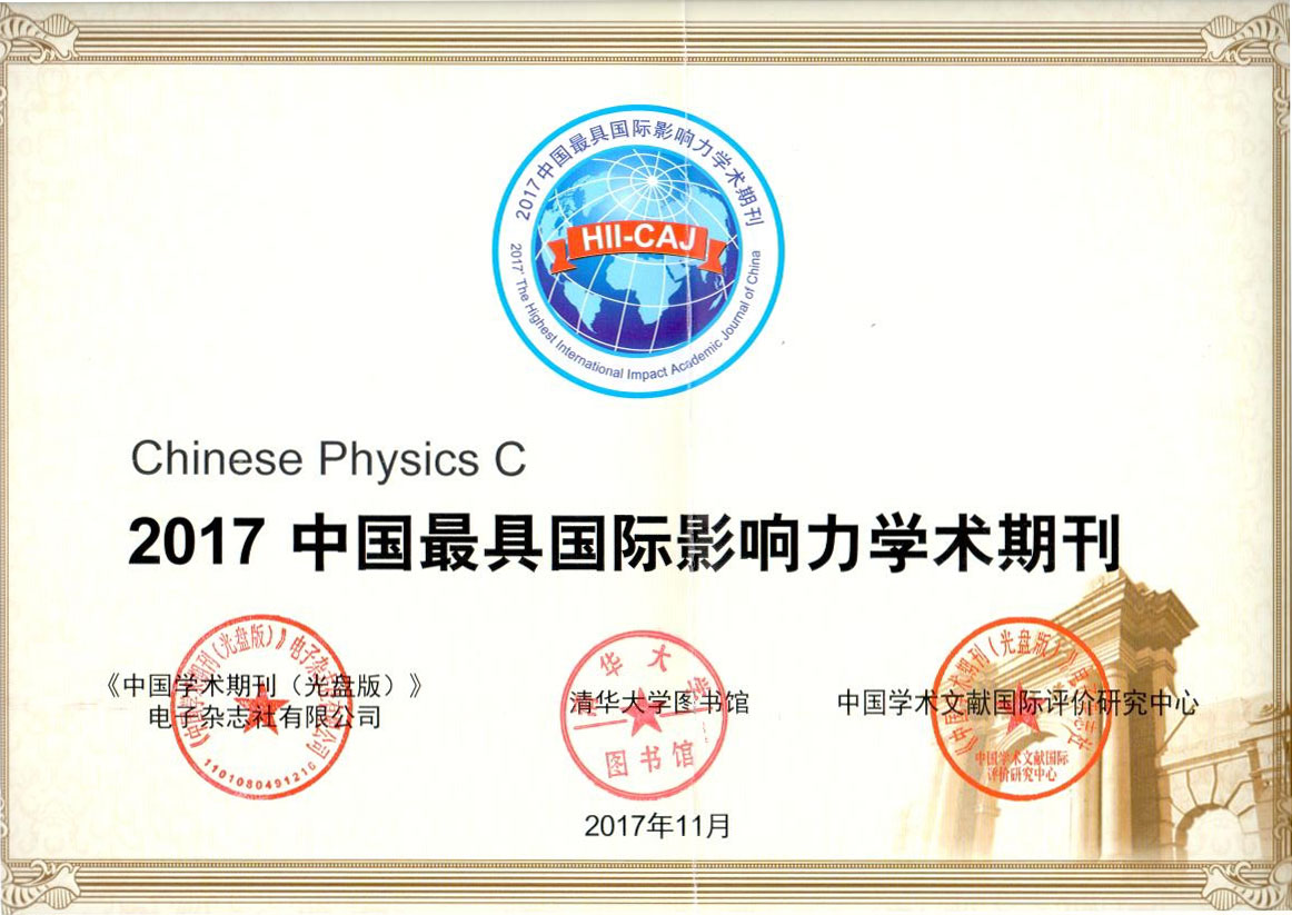 Chinese Physics C 以其学术质量水平和国际影响力的大幅提升,已连续四年入选“中国最具国际影响力学术期刊”。