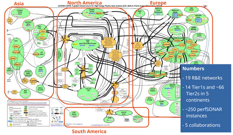 随着LHCONE的推广和成功,该虚拟网络环境不仅仅为LHC的科研数据提供服务,也为具有全球数据共享需求的其它实验(如日本的BelleII)提供数据交换服务。同时,LHCONE也在互联网络性能检测、未来网络技术与架构等方面开展全球合作。