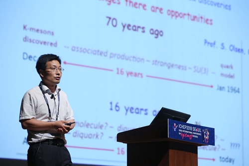 第三十九届国际高能物理大会于7月4日至11日在韩国首尔召开。由王贻芳所长带队, 中科院高能所40多位代表参加了会议。高能所代表团应邀作了两个大会报告、近40个分会报告和多个展板报告。报告内容涉及理论、加速器、探测器以及多个不同实验项目。实验物理中心阮曼奇副研究员和温良剑研究员作为专题召集人分别主持了加速器和中微子物理分会。