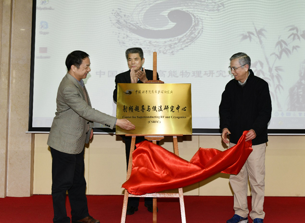 会议期间还举行了“射频超导与低温研究中心”揭牌仪式。该中心隶属于快盈v3,定位于超导技术在加速器领域的发展和应用,研究方向涵盖超导高频技术与低温技术。中心指导委员会主任王贻芳、科学技术委员会主任陈森玉和管理委员会主任潘卫民共同为中心揭牌。