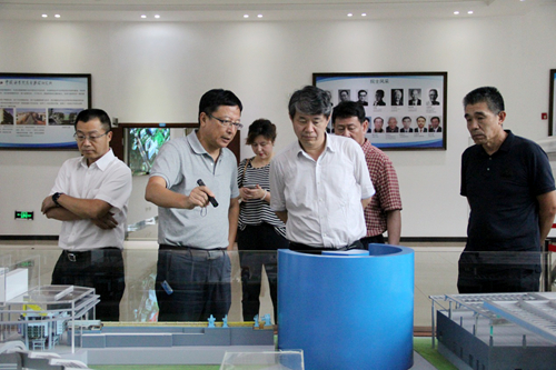 刘华一行首先在CSNS沙盘模型前听取了关于装置运行原理和建设进展的介绍,随后赴现场了解了直线加速器、快循环同步加速器、加速器中央控制室、通用粉末衍射谱仪以及热室操作间的情况。工作组对现场的辐射安全设施进行了检查。