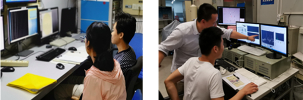 左图:1W1A-漫散射实验站用户正在收集实验数据;右图:4W1B-X射线荧光实验站用户正在收集实验数据