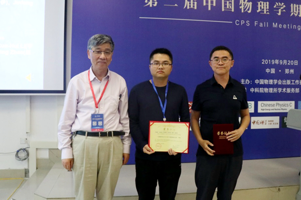 在刚刚结束的中国物理学会2019年秋季学术会议上,北京航天航空大学的姜寅教授和兰州大学的蒋华玉博士分别代表 Chinese Physics C 获奖作者参加了“2019年中国物理学会最有影响论文”颁奖仪式,祝世宁院士为两位获奖文章作者代表颁发了证书。