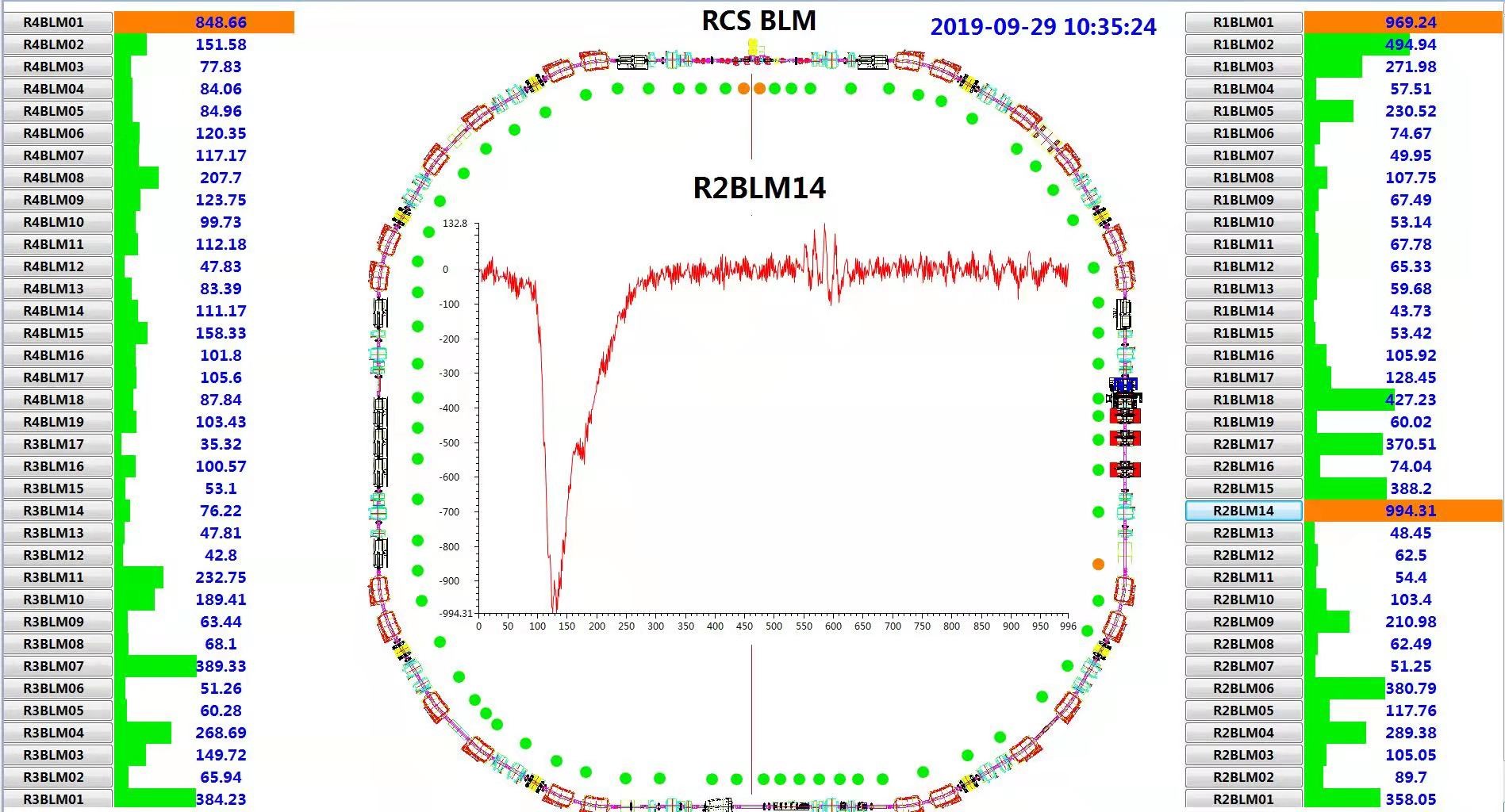 80kW运行时快循环同步加速器束流损失情况