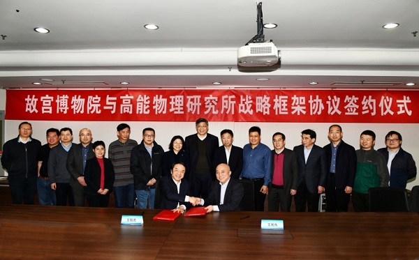 12月24日,中科院高能所与故宫博物院战略框架协议签约仪式在高能所举行。战略框架协议由高能所所长王贻芳与故宫博物院院长王旭东共同签署,陈和生院士、纪委书记魏龙及科研计划处、计算中心、核技术应用中心、多学科中心相关负责人员参加了签约仪式。