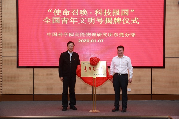 1月7日,广东省东莞市6个青年集体开展了2017-2018年度“全国青年文明号”集中揭牌仪式。中科院高能所东莞分部加速器技术部作为获奖集体之一,在东莞分部举行了揭牌仪式,高能所副所长、东莞分部主任陈延伟,东莞团市委书记沈志攀出席仪式并揭牌,东莞分部党总支副书记刘磊主持了仪式。
