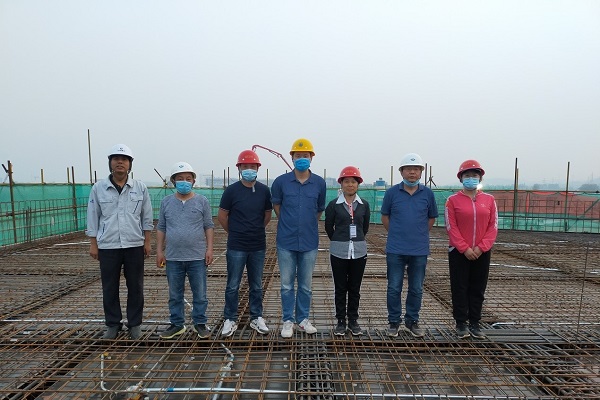 建设、设计、监理及总包单位验收高频厅最后一段顶板钢筋