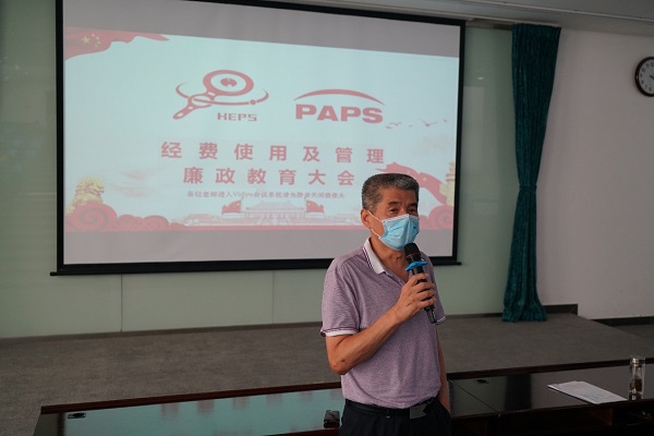 最后,HEPS工程总指挥、PAPS项目经理潘卫民在总结讲话对报告人表示感谢,并表示此次“反腐倡廉”主题的报告会非常必要。他还说,HEPS工程经费巨大、建设周期长、人员队伍庞大,PAPS工程人均经费额也相对较高,并借用“问渠那得清如许,为有源头活水来”诗句,对工程相关各级人员提出期望和要求,希望HEPS和PAPS工程人员多看多想多问,加强相关规定条例的学习,自律自省自洁,在科研中,严格遵守学术道德,在采购过程中,明底线、知敬畏,高度重视经费使用规范,尤其注意利益相关者要保持合理距离。他还强调,第一环节签批采购单的系统负责人以及各级负责人,要发挥各级的监督作用,严格审核把关,坚决杜绝不规范行为,上下齐心把HEPS和PAPS两个项目打造成“风清气正,绿水青山”的阳光工程。