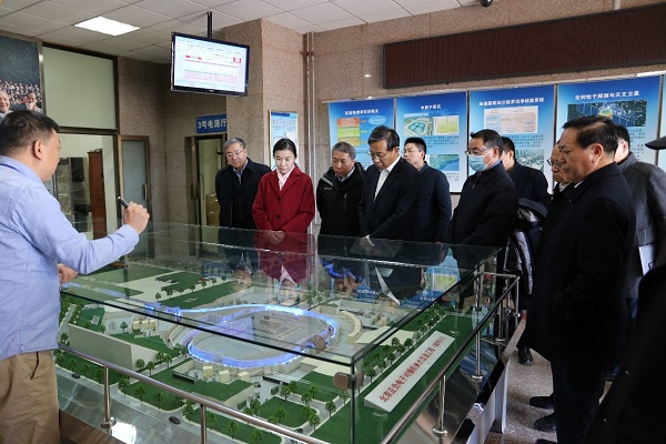 随后,在卢方军的陪同下,张宏伟一行参观了北京正负电子对撞机沙盘和中控室。