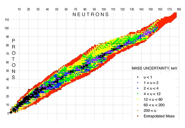 质量是表征原子核基本性质的物理量;核质量数据广泛用于核物理、核天体物理等基础研究以及核技术应用中。原子核质量测量是核物理研究的一个前沿热点课题。原子质量评估(简称AME)是权威的原子核质量数据来源,目前AME合作组成员来自中国科学院近代物理研究所、先进能源科学与技术广东省实验室、美国阿贡国家实验室、日本理化学研究所、德国马普核物理研究所和法国巴黎萨克莱大学等研究机构。AME收集与原子核质量相关的所有实验数据,经过评估后推荐出质量值及相应误差,定期在学术期刊和网络上发布,为科研人员提供基准数据。