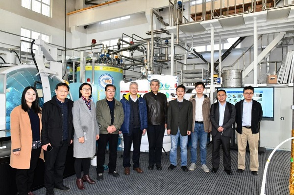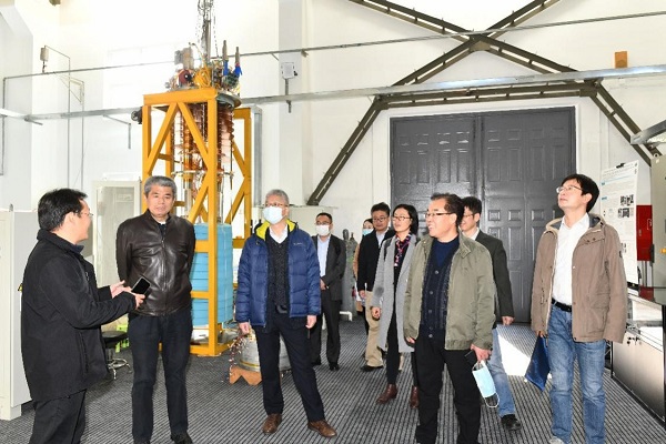 签约仪式后,汪鹏飞一行在潘卫民、超导磁体组组长徐庆金等陪同下参观了位于加速器大厅的北京正负电子对撞机模型和高能所超导厅80L/h氦液化器示范应用现场。