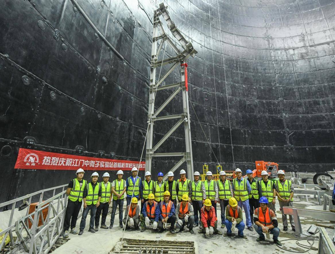 1月21日,江门中微子实验中心探测器的不锈钢网壳主结构第一榀支撑柱成功吊装落位,这也标志着江门中微子实验探测器现场安装工作全面展开。