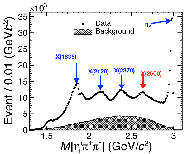 过程中观测到的这一新粒子X(2600),实验确认其统计显著性大于20倍标准偏差,并测量到X(2600)的两个主要衰变模式