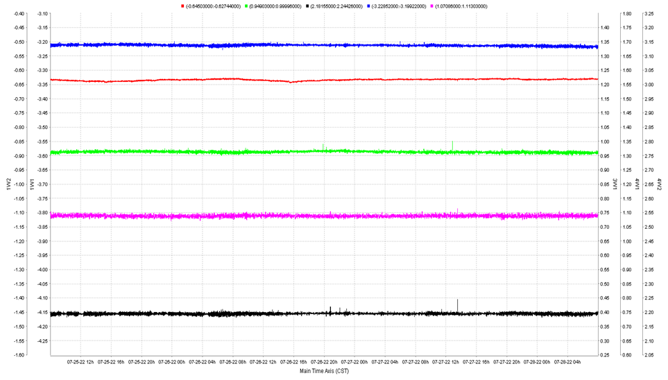 1W1、1W2等5个插入件处束流轨道变化(72小时)