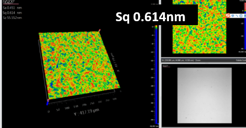 团队对自研切槽晶体系统性地进行了离线表征和在线测试。白光干涉仪检测显示内侧面的粗糙度达到0.6nm RMS(图2),电镜表征显示完美晶格基底上仅覆盖2.5nm厚的均匀SiO2层(图3)。在线测试结果显示其摇摆曲线宽度与理论值相符(图4),峰值反射率85.1%,接近于88.3%的理论极限;X射线形貌衬度均匀,消除了划痕及点状缺陷(图5);两次衍射的波前误差达到130nrad(图6),满足了HEPS 光束线切槽晶体的技术要求。如表1所示,与国际产品相比,自研切槽晶体的技术指标总体上达到或优于国际水平。