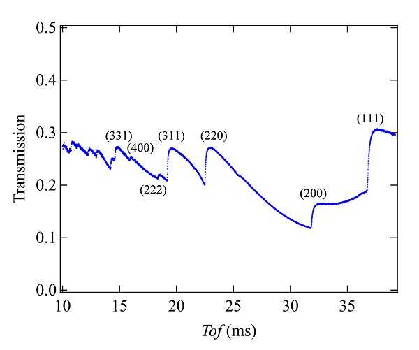 图(3)轧制304L不锈钢钢板的布拉格边透射谱