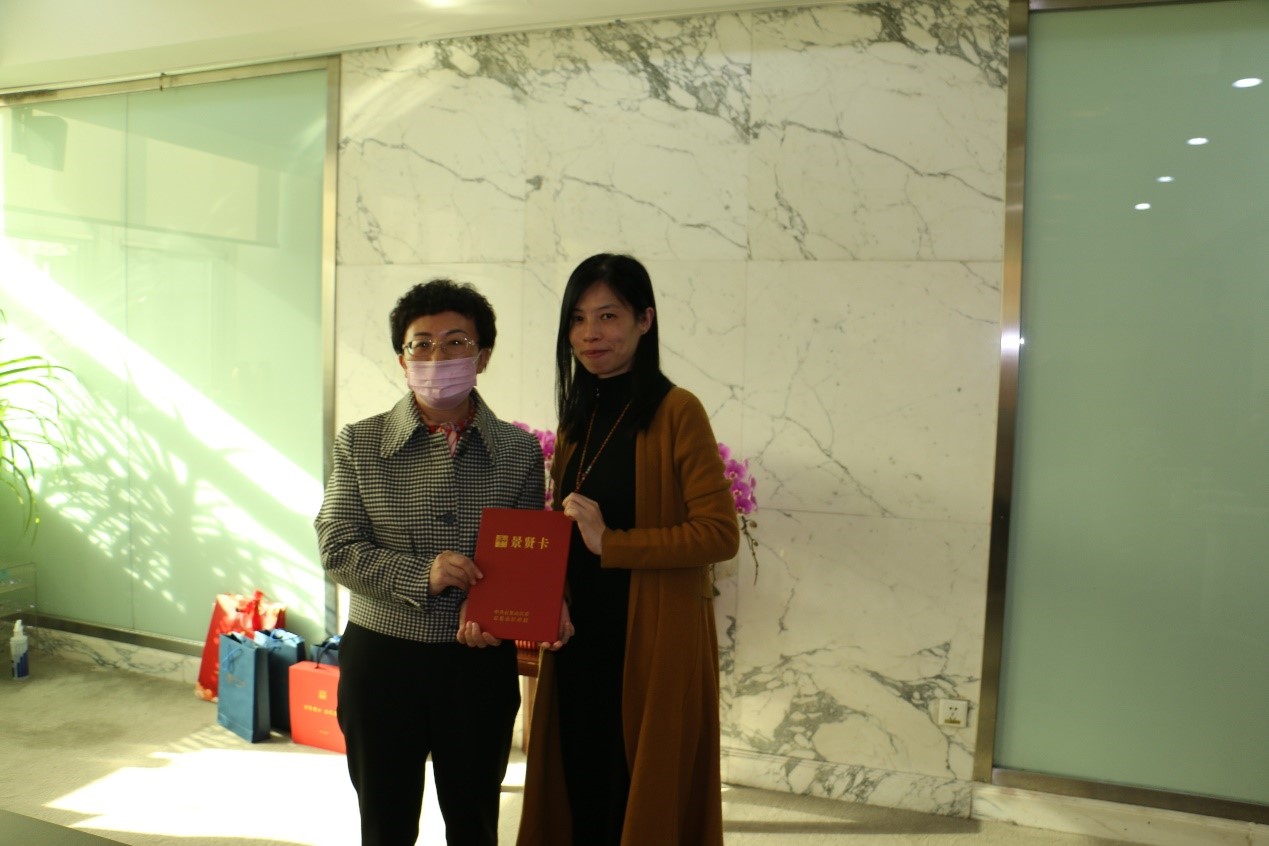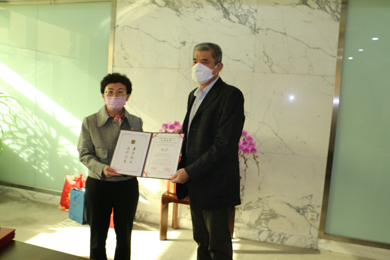李文化代表石景山区委、区政府对高能所各位科学家及全体科技工作者做出的突出贡献表示衷心的感谢和崇高的敬意,她介绍了石景山在2022年经济、民生等多方面取得的重大进展,为潘卫民研究员颁发“景贤人才”证书、为 “景贤人才”颁发景贤卡。