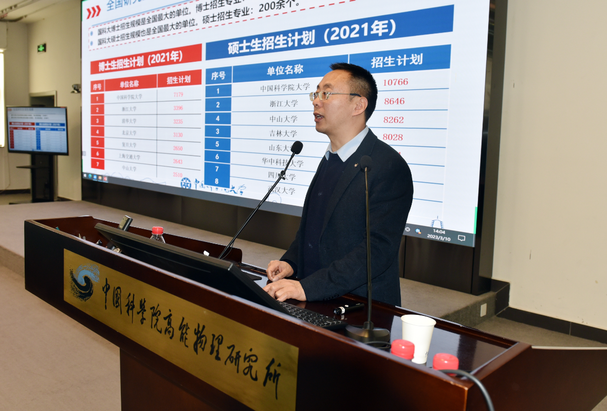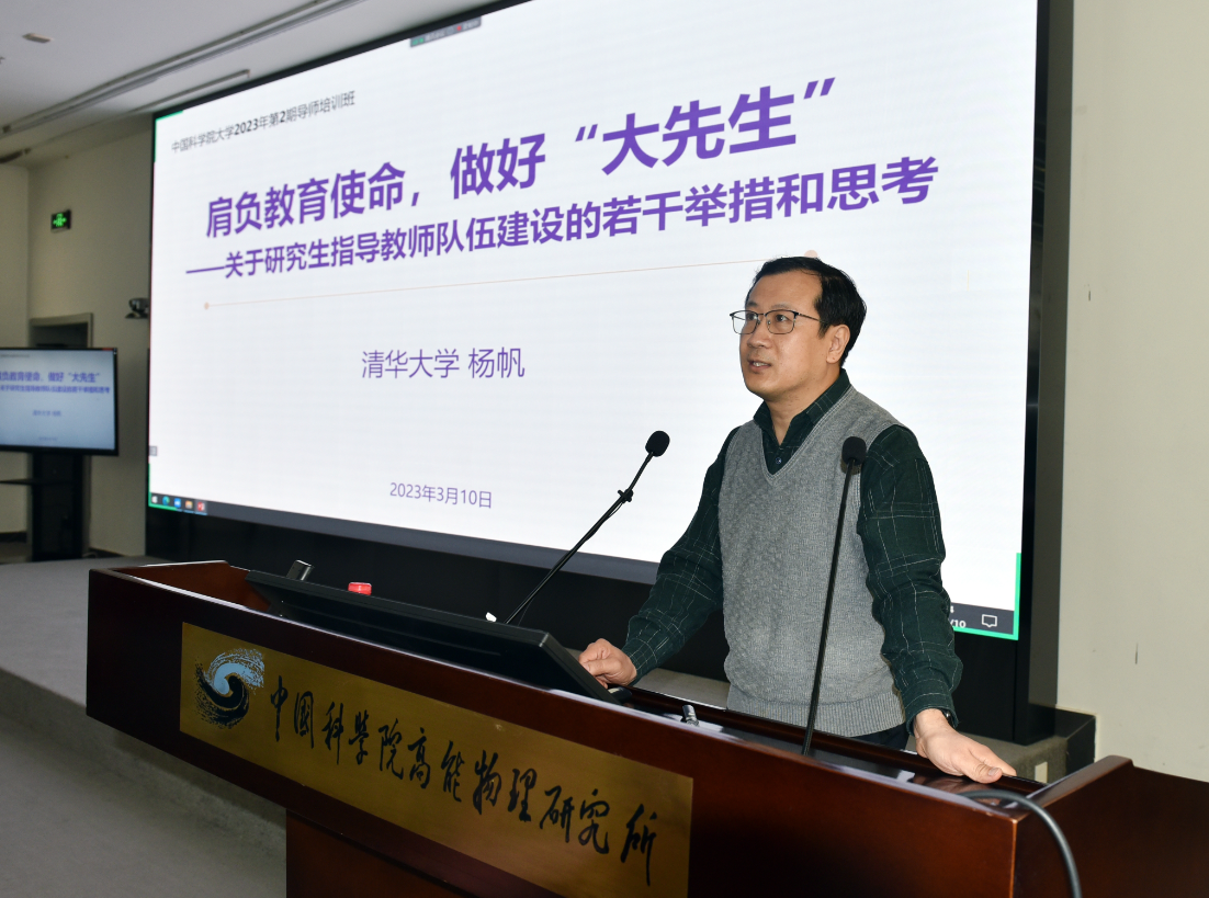 为深入贯彻二十大报告“科教兴国、人才强国”精神,进一步增强导师立德树人责任意识,加强导师队伍建设,有效提高研究生培养质量,2023年3月10日至11日,由高能物理研究所承办的中国科学院大学2023年第二期研究生指导教师培训班成功举办。国科大党委副书记金德鹏、高能所党委书记魏龙出席会议,来自高能所、过程工程研究所、微电子研究所、软件研究所、国家纳米中心、杭州高能研究院、计算技术研究所等15个单位的280余位导师参加了本次培训。培训由高能所学位评定委员会主任常哲、教育处处长保增宽主持。