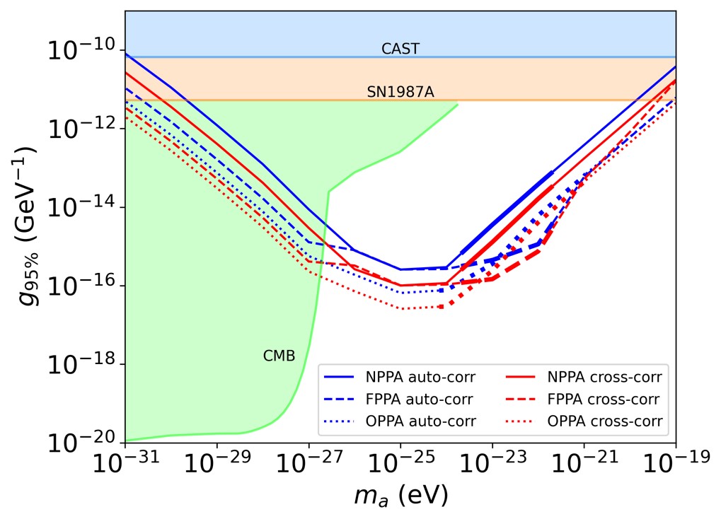 图:脉冲星极化阵列对超轻类轴子暗物质耦合常数的预期限制