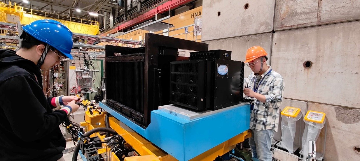 2022年10月19日-11月2日期间,中外科学家运行CEPC高颗粒度电磁量能器和强子量能器样机,在CERN超级质子同步加速器(SPS)的 H8束流线上进行了为期两周的高能粒子束流测试实验,如图3所示。团队利用CERN SPS H8束流线提供的10~120 GeV的电子和强子、160 GeV的缪子,本次束流测试针对CEPC电磁量能器和强子量能器两个样机的能量线性、能量分辨等关键指标进行了系统测试,共获取超过2500万高能粒子事例。这些数据样本将为CEPC量能器样机的探测性能研究、簇射空间分布和时间演化、强子相互作用模型的验证以及粒子流算法的实验研究提供重要基础。