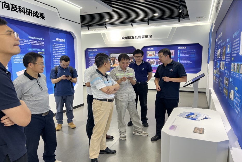 李建伟一行先后参观所史展厅、精密检测实验室、医学影像实验室和辐射安全监测中试实验室,详细了解高能所发展概况及研究院规划建设情况。在随后召开的座谈会上,双方围绕核电机组运维需求、设备性能提升、核能综合利用、人才培养、项目合作等深入交流讨论。