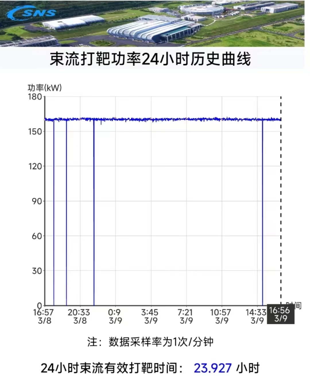 2024年3月4日,经过两周的紧张的束流调试,中国散裂中子源 (CSNS)打靶束流功率达到160kW并实现稳定供束运行,超过设计指标60%。