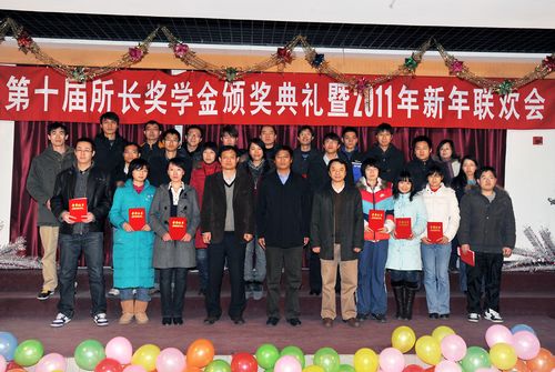 2010年12月29日下午,高能所第十届所长奖学金颁奖典礼暨2011年新年联欢会在所工会俱乐部举行。出席颁奖大会的领导有党委书记王焕玉,常务副所长王贻芳、副所长姜晓明、学位评定委员会主任宋黎明和副主任奎热西、研究生政治辅导员陈宏刚等。