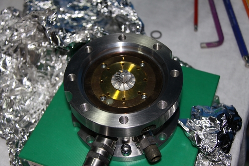 1月29日,当很多人还沉浸在欢乐祥和的节日气氛中时,加速器中心参加运行的人员仍然延续着多年的惯例,放弃休假,坚守岗位,认真细致地工作着。中午时分,低温系统磁体侧压缩机突然停机,经现场检查发现是制冷机控制系统供电的UPS故障造成输入短路。在更换备用UPS电源后,控制系统恢复供电。当日下午重新起动压缩机和制冷机,工作人员发现制冷机一级透平异常,出现异响,转速无法达到正常运行时的转速,且波动激烈。此时,制冷机仍处于低温状态,工作人员怀疑有透平表面有不同凝固点的附着物造成透平失稳产生波动,随即关闭了制冷机制冷模式并启用复温模式,并于29日晚及30日清晨分别在透平不同的温区120K、200K及280K又进行了几次起动制冷机的操作,制冷机均在2000-3000rps不同的转速下出现失稳无法正常运行,由此判定透平在高速运转中因突然停车导致损坏。