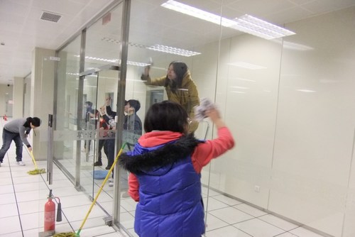 全室20余名青年职工学生在中心团支部的号召下积极参加了本次志愿活动。到了约定时间,大家自觉地汇集到了机房,明确分工,各司其职。在机房内、走廊上、值班室里都留下了青年们劳动的身影。清洁卫生、擦拭玻璃、打水、拖地板,志愿者们在清扫的过程中互相帮助、密切配合,各项工作井然有序,反复清扫,不留死角。很快,一个清洁明亮的机房呈现在了我们的面前。