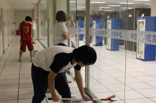 为给参观者营造一个干净整洁的参观环境,计算中心团支部安排中心青年职工和学生对计算中心机房等参观点、消防通道进行了卫生清扫活动。