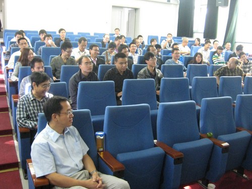 在中秋与国庆双节来临之际,9月29日上午,加速器中心在化学楼C305会议室举行了2012年度迎新会,加速器中心室务会成员秦庆、马力、唐靖宇、曹建社、池云龙、王九庆和潘卫民,老主任和现在的顾问张闯,部分行政组长和支部书记,中心工青妇领导,40余位新职工及二年级新入室研究生欢聚一堂。