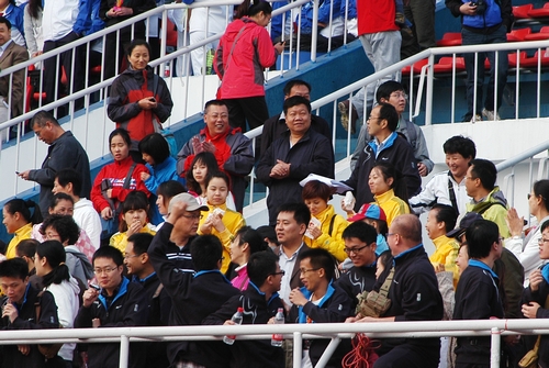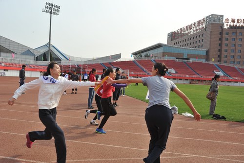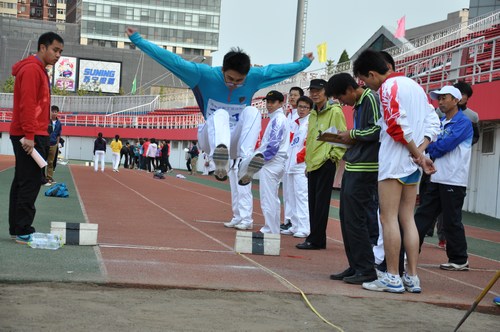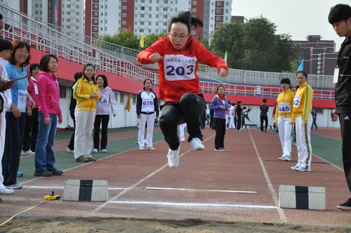 9点田径比赛正式开始,运动场上你追我赶,奋勇争先。运动员们摩拳擦掌、各显身手,顽强拼搏的精神体现的淋漓尽致;集体跳绳和团体接力进行得如火如荼,展示了各代表队默契合作的团队精神。比赛现场气氛紧张活泼,参赛队员和观众热情高涨,赛场上高潮迭起,扣人心弦。