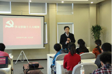 11月18日上午,由多学科研究中心第二党支部和中心工会组织的学习贯彻十八大精神学习讨论会在静之湖酒店举行,第二支部党员以及职工和学生共66人参加了此次会议。