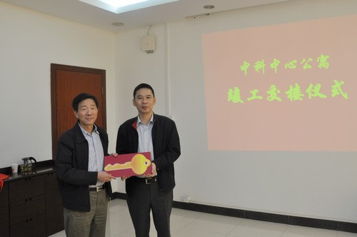 最后,练刚代表松山湖房地产公司把“钥匙”交到了高能所副所长奚基伟手中,标志着中科中心公寓建设顺利完成。
