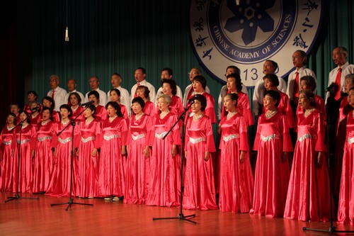 9月16日,离退办组织离退休老干部合唱团54人参加了中科院京区2013文艺年“中华魂颂歌献给党 报国志奋力奔小康”文艺汇演暨表彰大会。该活动是京区离退休干部2013文艺年的系列活动之一,由中科院离退休干部工作局主办,中国科学院大学离退办和高能所离退办协办。京区各单位离退休工作人员及离退休演出人员参加了大会。高能所选送的大合唱《旗帜颂》、《我的祖国》拉开了整场演出的序幕。