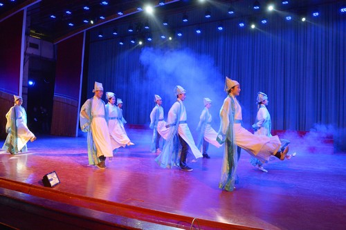 由科研处职工组织编排、青年舞蹈协会推送的现代集体舞《踏古》令人印象深刻。科研处联合技术发展处、多学科中心、加速器中心、核技术应用中心等单位青年舞协的优秀文艺青年参演。舞蹈排练历时两个月,所有表演者付出了大量的努力。整场舞蹈展现的是一群秀才进京赶考、勤奋踏实、不辞辛苦的故事,观众瞬间穿越到古代,置身于这些高谈阔论、舞文弄墨、意气风发的才子中间;一位仙女穿插在故事中,时时飘然而过,将她的彩带挥洒在半空,密切关注着这样一群孜孜求学的青年,成为整场舞蹈的亮点。舞蹈音乐轻松欢快、服装与灯光配合默契,令观众赏心悦目、整个舞台色彩鲜明,景象逼真。